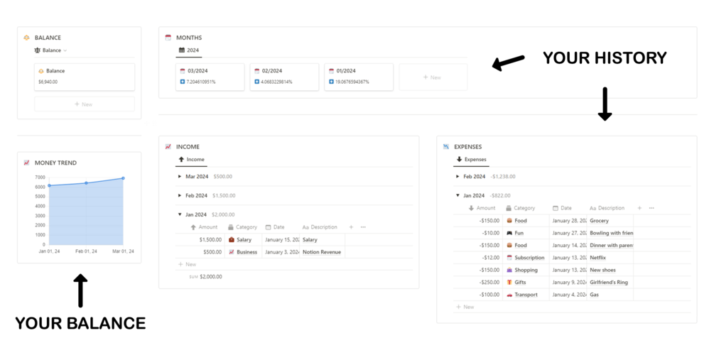 🔄️| Months & Transactions History (so you have everything tracked 📋)