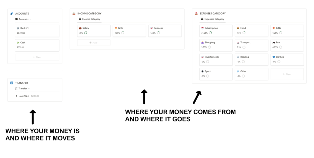 📁| All categories with % Spent (so you know where they go 🚀)